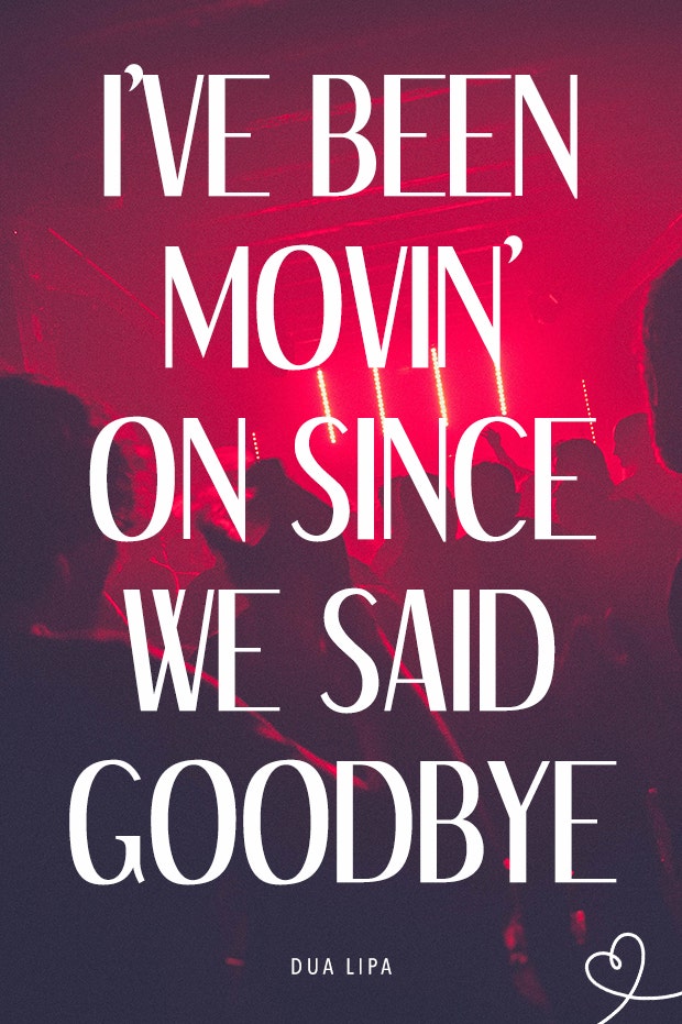 "I've been movin' on since we said goodbye."