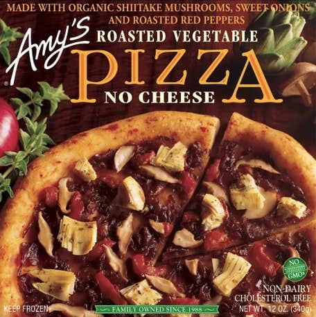 This fire-roasted vegetable pizza is dairy-free, gluten-free, soy-free, and plant-based. What more could you want from a healthy frozen pizza?