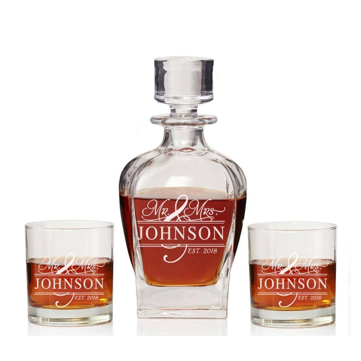 1. Personalized Mr. and Mrs. Whiskey Decanter
