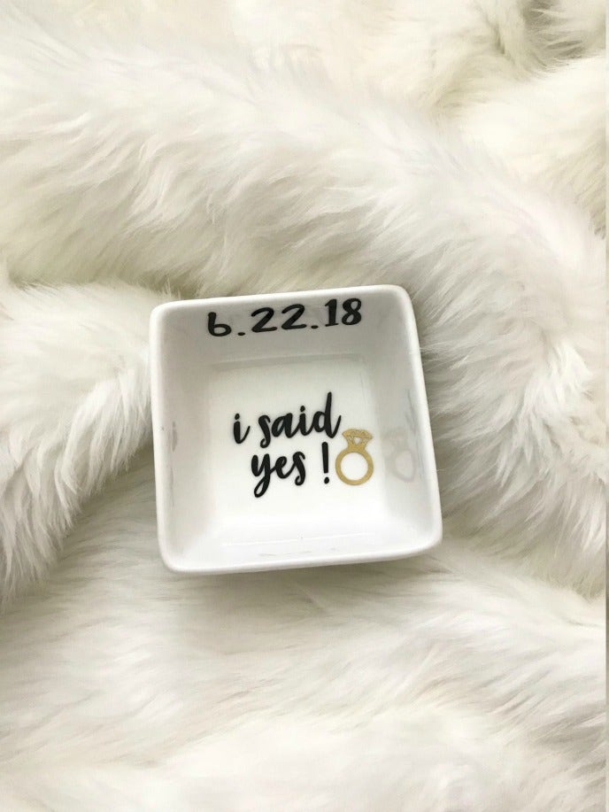This personalized ring dish is the perfect gift for the bride-to-be in your life. You can also personalize and change the color to best suit the new couple.