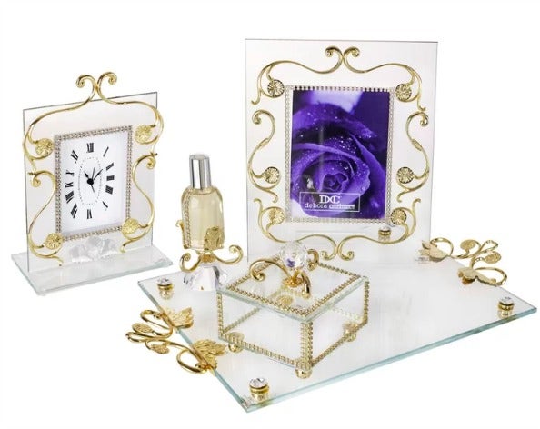 Cherish the memory of any special occasion with this Gold Plated 4 Piece Wedding Gift Set. This set can be given as a wedding present, and each piece is crafted and designed with gold vine accents.