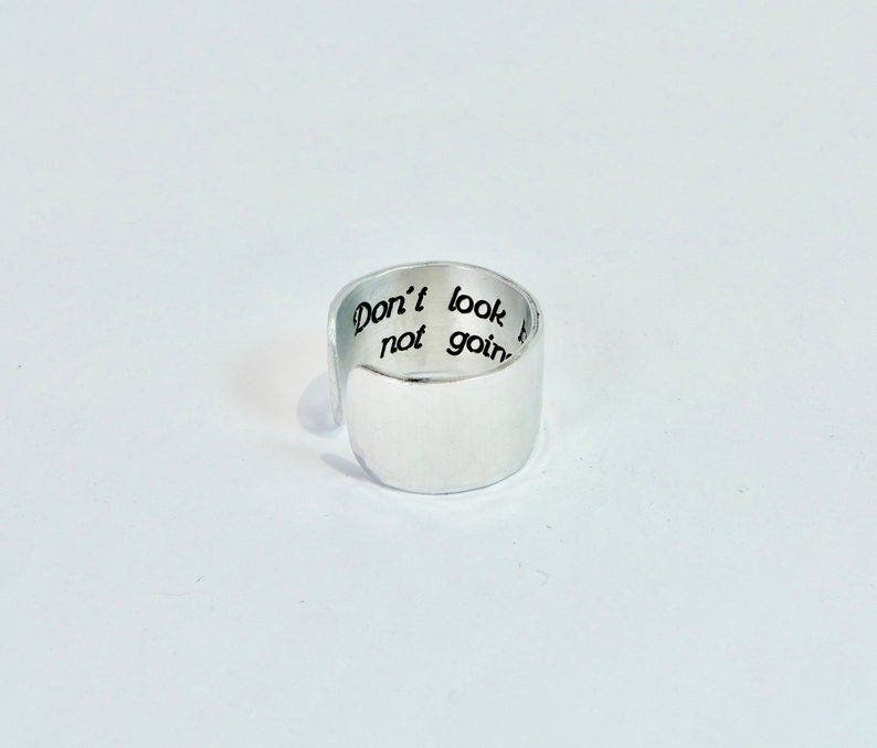 “A hidden monogram on a piece of jewelry like on the back of a necklace or bracelet so that the engraving is more personal is a sweet gift idea,” Rothweiler suggests. You can customize this silver cuff ring to have a name, date, or even the location of your wedding day.