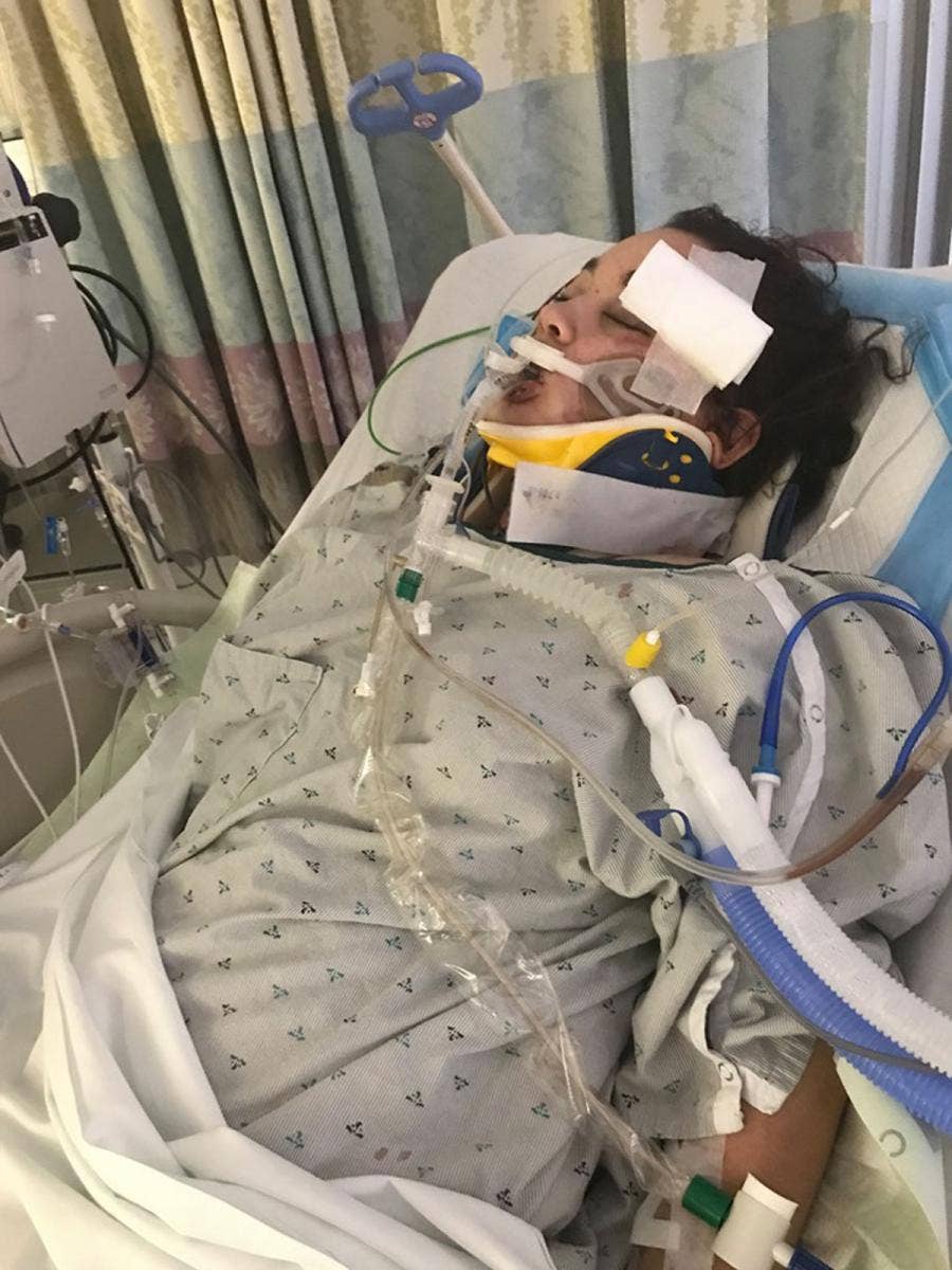 Both lungs collapsed and my whole body was so swollen they couldn’t see for weeks what kind of broken bones I had. I had multiple emergency surgeries to stabilize me. They had to remove part of my small intestine and part of my ileum.”