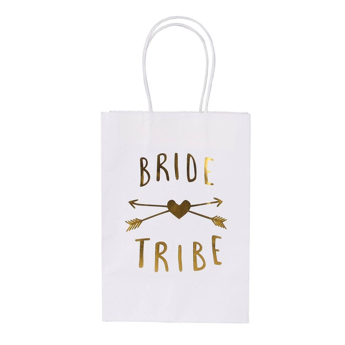 Each set includes 12 gilding paper bags that read "bride tribe." Each has a handle, so your bridesmaids can hold onto it.
