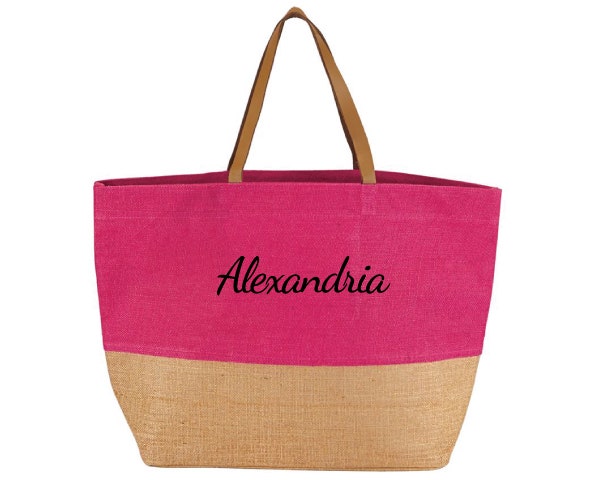 If you have a destination wedding at a faraway island, you might as well gift your friends a tote that matches with the vibe. This colorful, tropical-themed tote offers up a bright splash of pink, navy, cream, or black with a rich tan bottom.