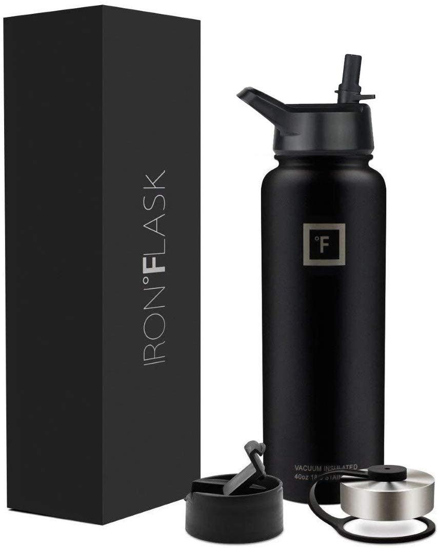 The double wall insulation makes the Iron Flask sweat-free. It keeps your drink cold for up to 24 hours, and hot for up to 12 hours. And it comes in a variety of fun colors if black isn't your thing.