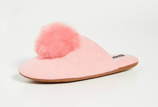 20. Minnie Rose Cashmere Pom Pom Slippers