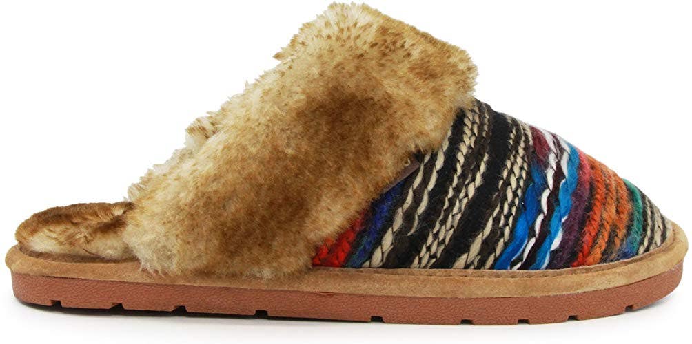 The Juarez Scuff Slipper from Lamo Footwear combines cozy faux fur with patterned fabrics for the perfect pop of color. These high-quality slippers are cute and comfy, but also come equipped with sturdy outsoles for indoor/outdoor use.