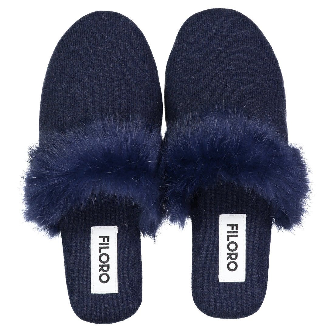 4. FILORO Fur Trim Cashmere Slipper