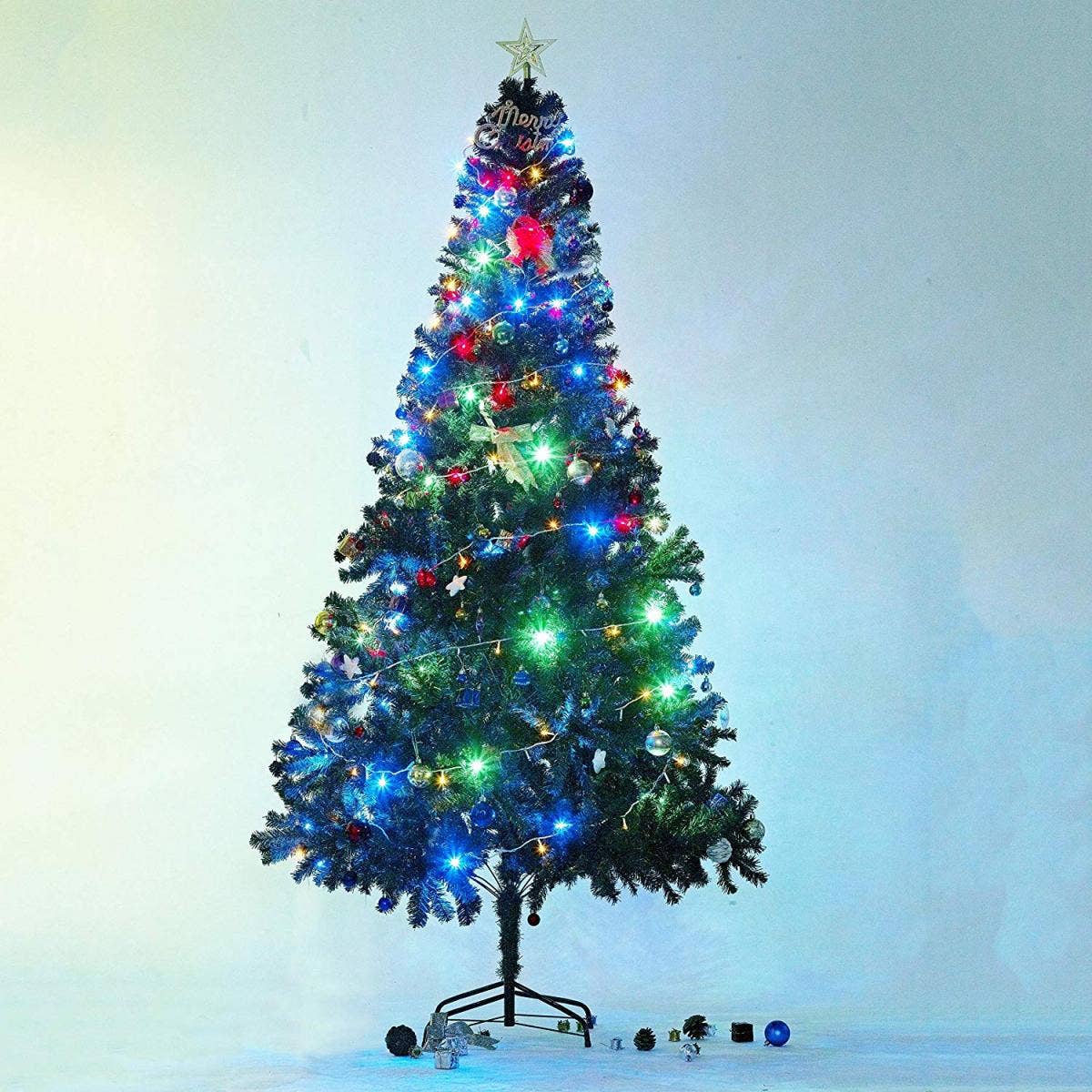 Pre-strung with 450 UL listed MultiColor lights, all metal hinged construction (branches are attached to center pole sections) with sturdy tree stand, it'll look wonderful this year.