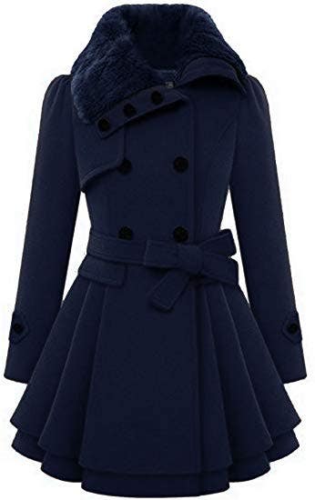 5. Zeagoo Women's Fashion Faux Fur Lapel Double-Breasted Thick Wool Trench Coat Jacket