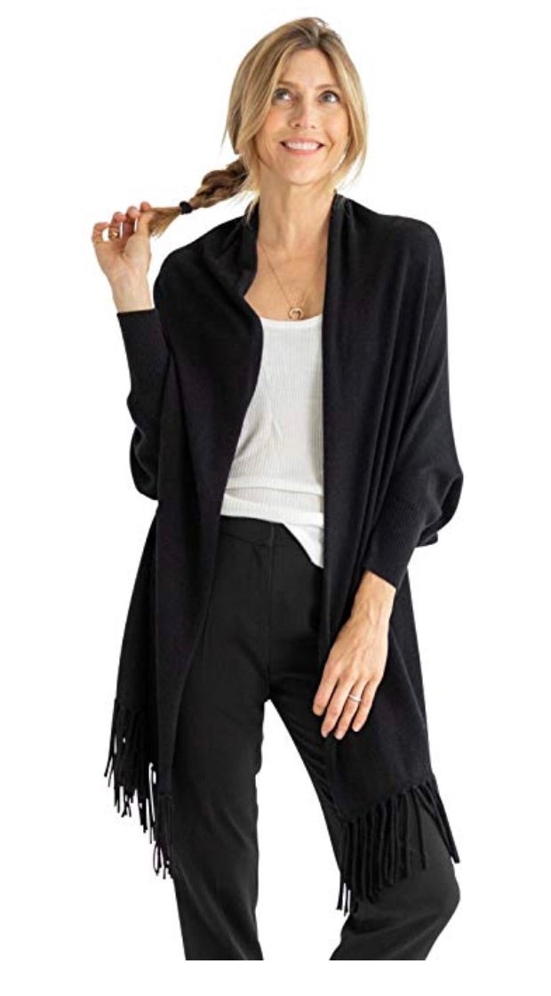 Envelope yourself in softness with Mer-Sea & Co's snuggle cashmere and Merino wool blend wrap. Designed with sleeves, it can function as a sweater, scarf or wrap, making its versatility unparalleled.