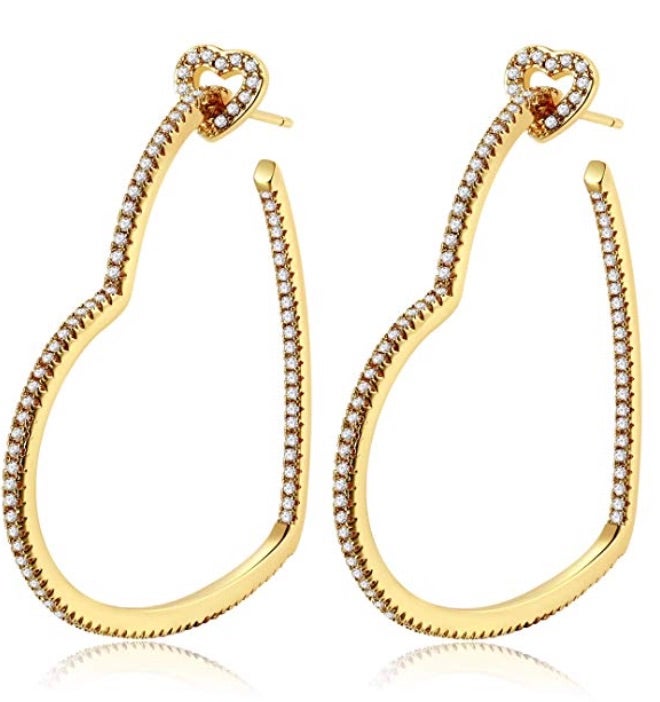 Give her this pairs of earrings she'll wear again and again. Express your love with these heart-shaped hoops that are almost as beautiful as her. A great gift to show her how much you truly care and cherish her.