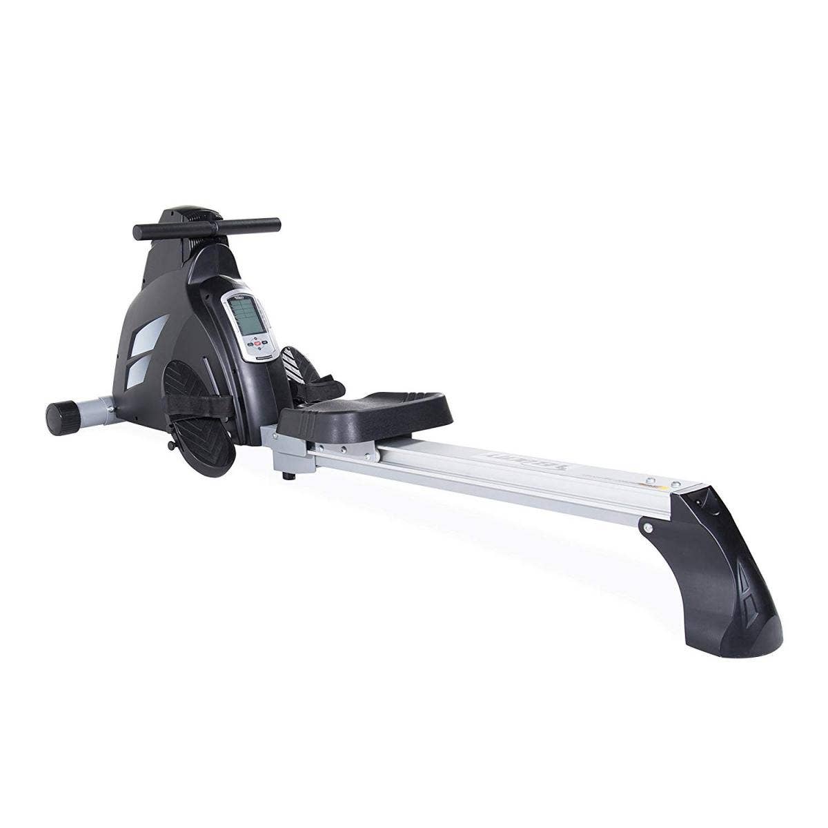 A budget-minded option, this rowing machine comes with 16-level magnetic tension resistance for easy operation, letting you customize your workout plan. The full-body low impact workout targets forearms, biceps, triceps, shoulders, legs, thighs and more, while the LCD monitor displays the data of calories, reps/min, time, count and total count, tracking your training record.