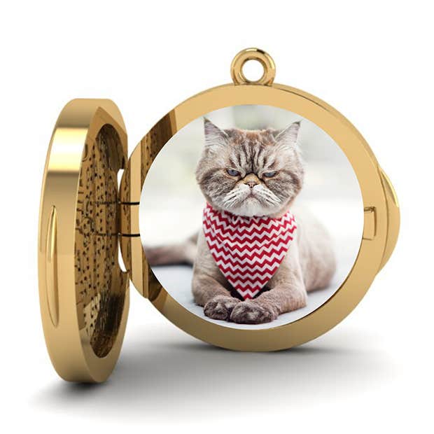 When opened, this locket reveals a special picture ... of your kitty! For those of us in the group (raises hand) who hate to be away from their little cheetah for even a weekend, this is a PURR-fect (promise we'll only make that pun once) gift idea to keep kitty with you at all times, right near your heart.
