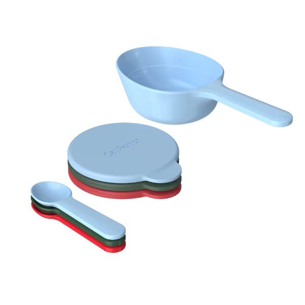 Easy to wash and easy to use, this measured scooper and spoons can work with any cat food (so you're not continually sacrificing your own human spoons to feed Kitty.) The three airtight lids keep wet food (and your fridge) fresh between servings.