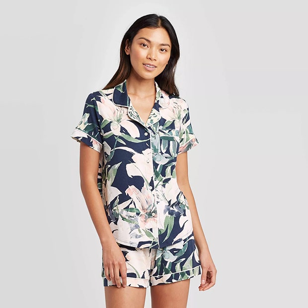 This 100 percent polyester pajama set resembles satin, but for a fraction of the cost. The set has a conveniently placed pocket as well. Plus, the leaf print gives off a tropical feel, which is perfect for those summer vibes.
