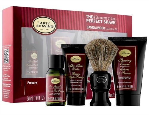 This retro-style shave kit is ideal for men missing their professional grooming. It comes with a 3-step shaving kit and a shaving brush.