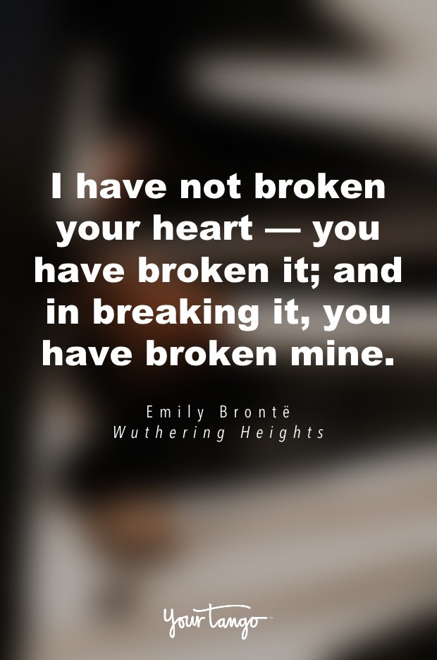 17. “I have not broken your heart — you have broken it; and in breaking it, you have broken mine.” — Emily Brontë, Wuthering Heights