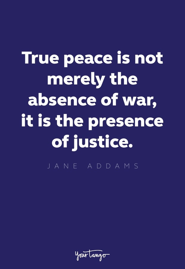 6. “True peace is not merely the absence of war, it is the presence of justice.” — Jane Addams
