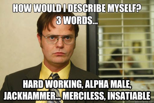 11. “How would I describe myself? Three words: hardworking, alpha male, jackhammer, merciless, insatiable.”