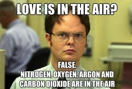 24. “Love is in the air? False. Nitrogen, oxygen, argon, and carbon dioxide is in the air.”