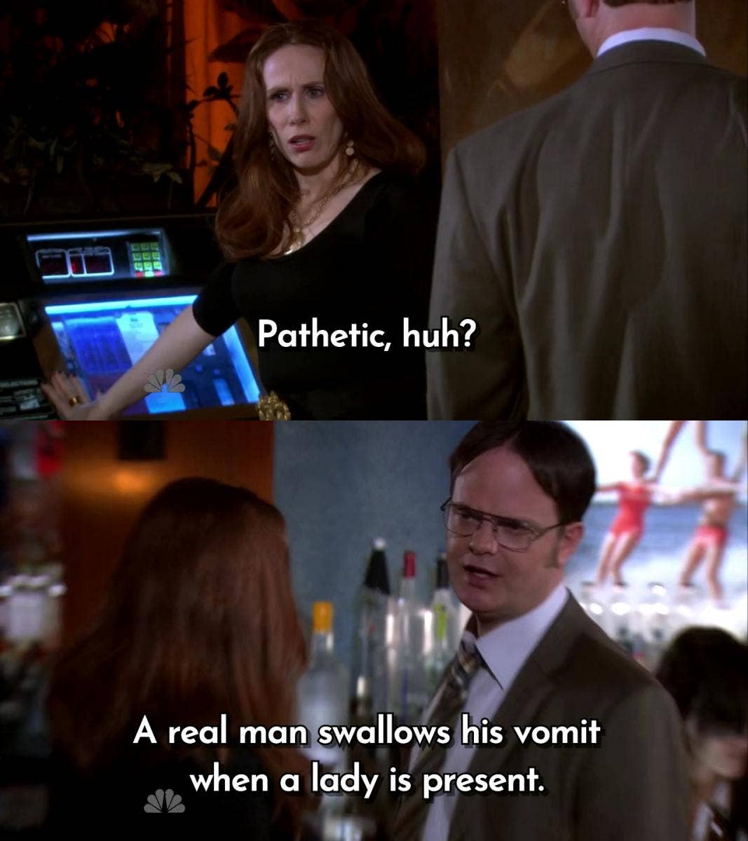 35. “A real man swallows his vomit when a lady is present.”