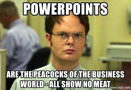 6. “PowerPoints are the peacocks of the business world; all show, no meat.”