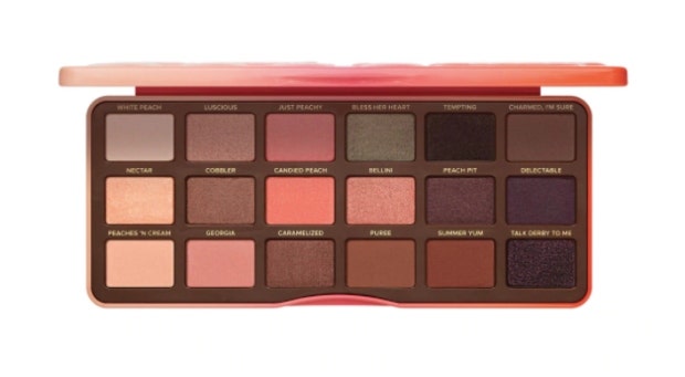 This fun palette includes not just peachy tones but also corals, bronze, and even purple — all fun shades for a neutral yet sweet as a peach look. And, as a bonus, it smells like peaches!