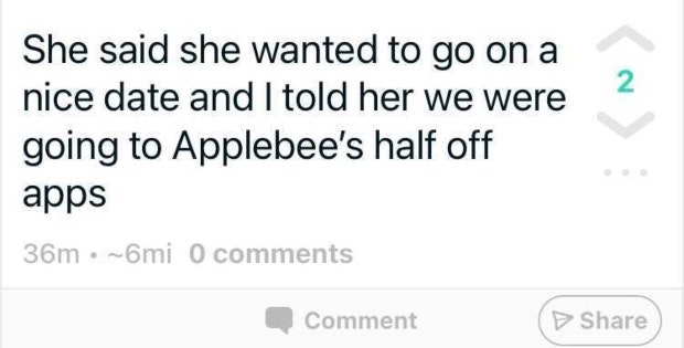 2. Applebees Is A Nice Date