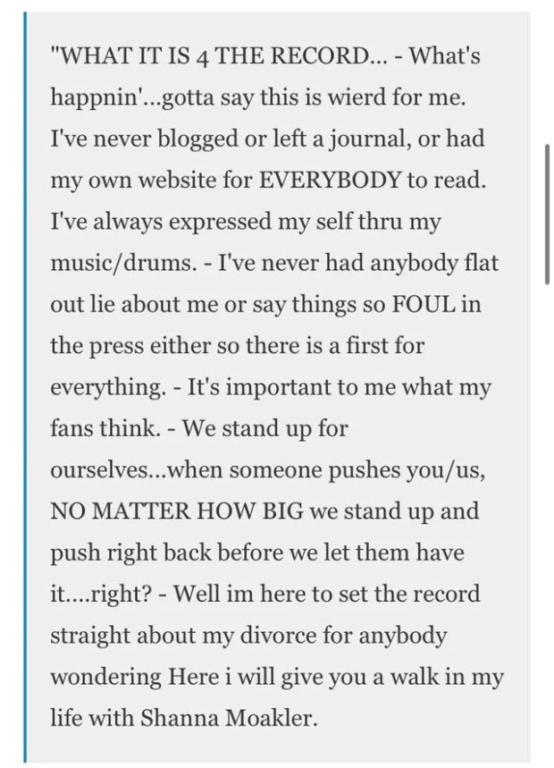 Barker begins the post by saying he has never had his own blog or anything similar, instead preferring to express himself through his music. However, he felt it was important to “set the record straight” about his divorce.