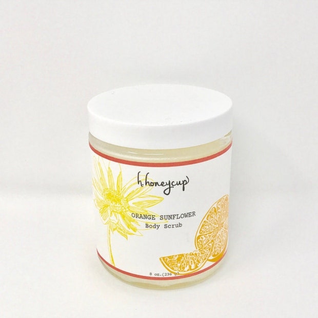 Orange Sunflower Sugar Body Scrub With Mango Butter, $29, Hhoneycup