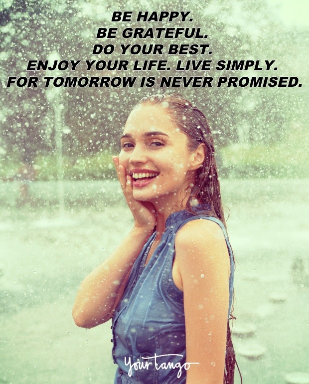 "Be happy. Be grateful. Do your best. Enjoy life. Live simply. For tomorrow is never promised." — Unknown