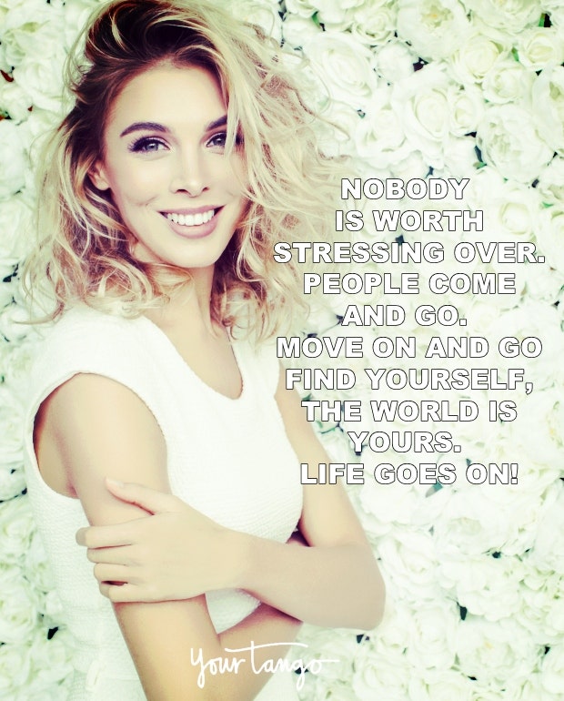 "Nobody is worth stressing over. People come and go. Move on and go find yourself, the world is yours. Life goes on!" — Unknown