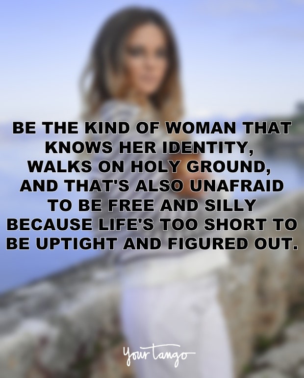 "Be the kind of woman that knows her identity, walks on holy ground, and that’s also unafraid to be free and silly because life’s too short to be uptight and figured out." — Unknown