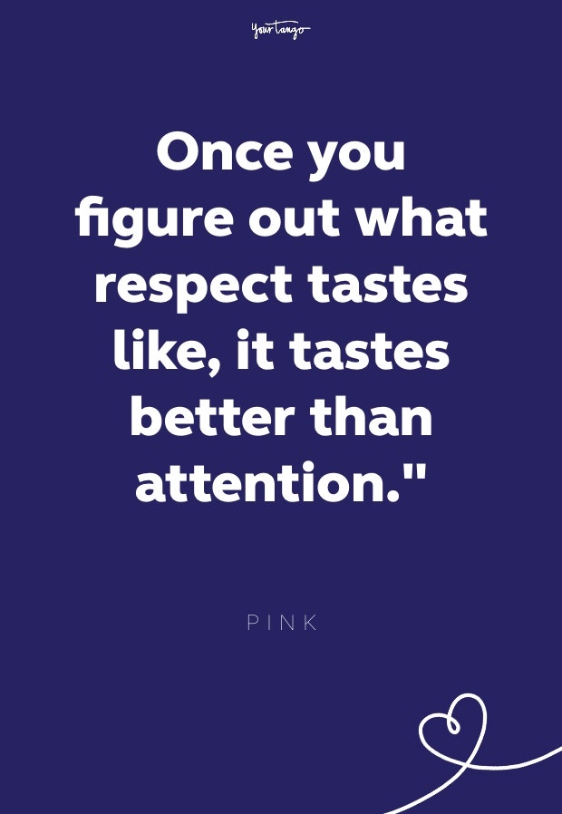 "Once you figure out what respect tastes like, it tastes better than attention." — Pink