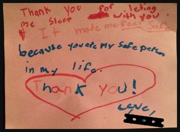 After I read her note, I couldn't stop thinking about the definition of the word safe (protected from danger and harm) and what an honor it was she chose that word to describe me.
