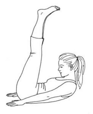 When you breathe in, raise your head off the floor, tucking your chin to your chest. At the same time, lift your legs to a vertical position. As you breathe out, lay your head and legs back on the floor.