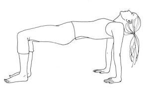 Drop your head back, raise your upper body, and keep your knees bent while your arms remain straight. This should create a tabletop with your body. Slowly return to the sitting position and rest for a few seconds before repeating.