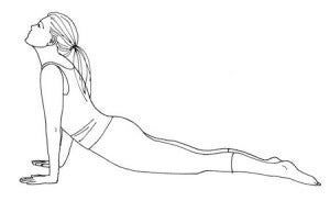 Press into an upward-facing dog, curling your toes under, lifting your head, and drawing your shoulders back. Then, tuck your toes under and draw yourself into a downward-facing dog.