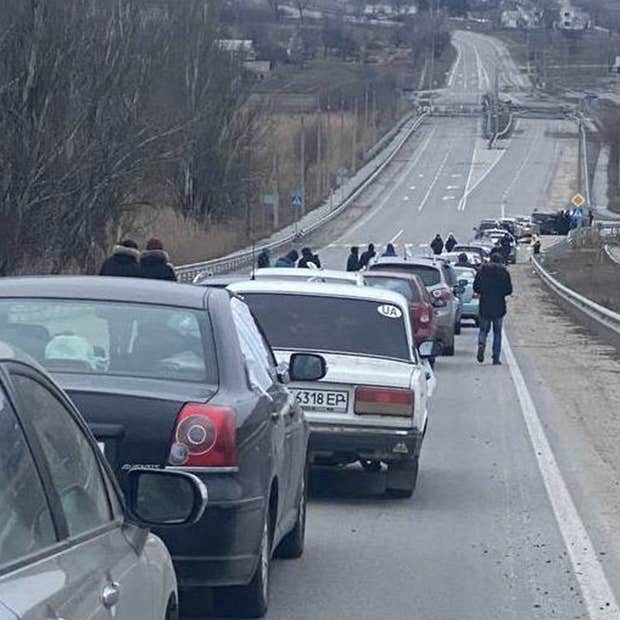 When it began to get dark, we finally met the Ukrainian military. At that time we formed a long line of cars.