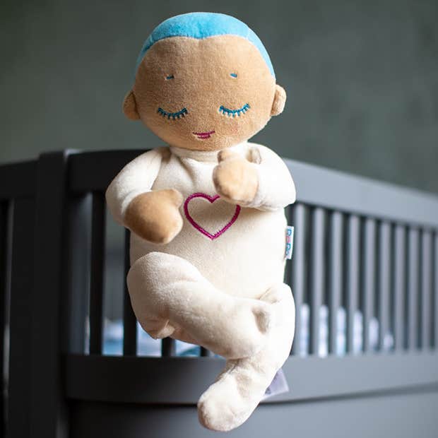 Designed in Iceland and inspired by scientific research on closeness, sleep, and wellbeing, the Lulla doll was in development for three years to get it exactly right. It imitates closeness to a caregiver at rest with its soft feel and soothing sounds of real-life breathing and heartbeat.