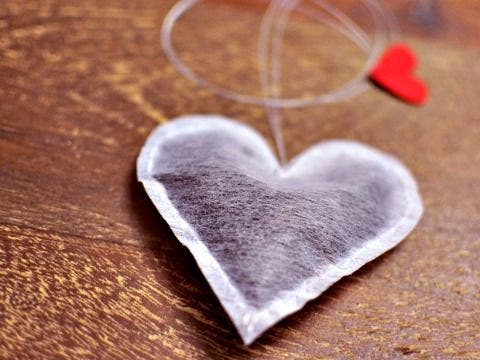 - Cut construction paper in the shape of a heart so that it's big enough to fit a teaspoon of tea leaves.