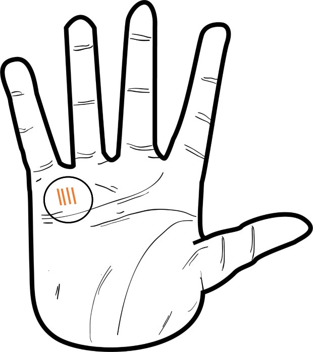 Located closer to the palm than Samaritan’s lines, they are a marker for healing “talent” rather than just a sign of someone who wants to help others. These lines are four (or more) vertical lines next to each other, grouped as though they belong together.