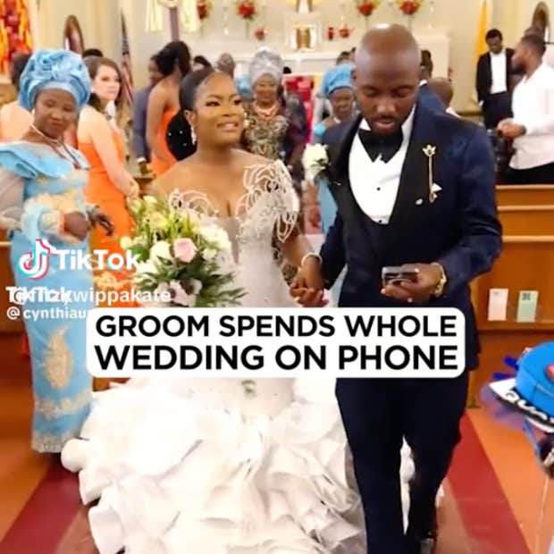 Groom Faces Backlash For Being 'Glued' To His Phone As He & His Bride Walk Down The Aisle