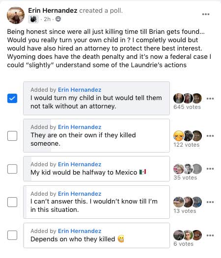 The responders are all on a page dedicated to information about the Gabby Petito murder, and many of them have declared Laundrie guilty in their minds.