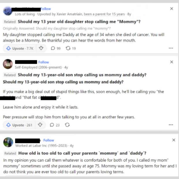 The concerns about the words stem from their sexualization or the idea that "mommy" and "daddy" are terms that only small children should be using. For some, hearing teens and adults call their parents by those names is totally normal and sweet, but there are others who label the references “creepy” and “childish.”