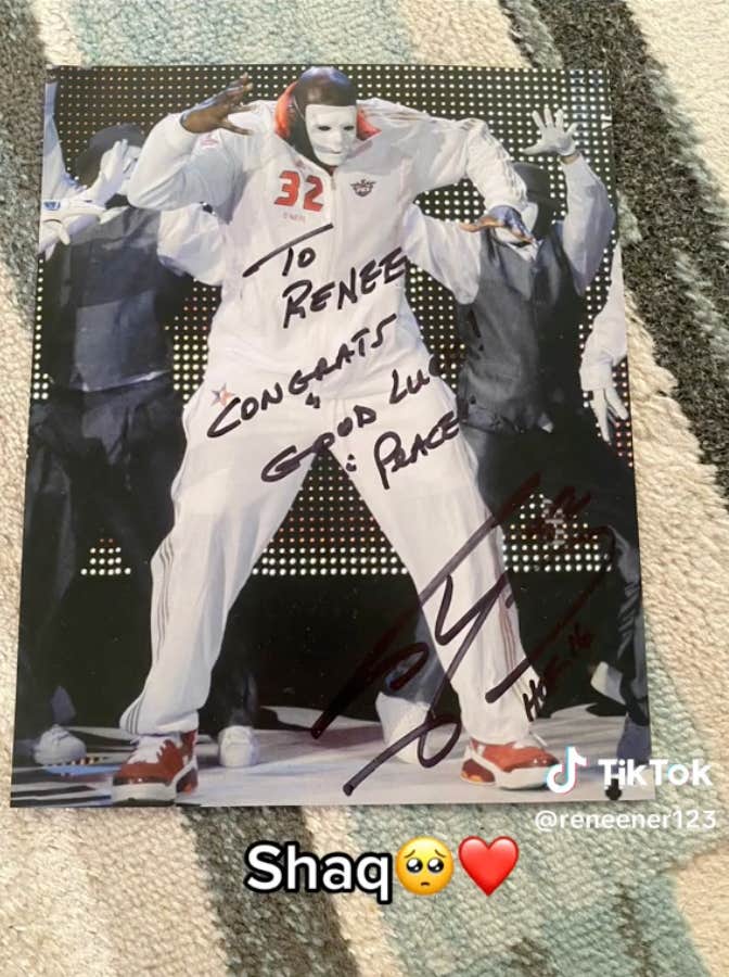 Shaq sent back a photo of him dancing with writing in Sharpie that read, “To Renee, Congrats and good luck! ‘Peace’” with his signature below the endearing message. On the other hand, Jordan sent back a card with two photos of him with just his signature. When you’re the G.O.A.T., suppose that’s all you need to write!