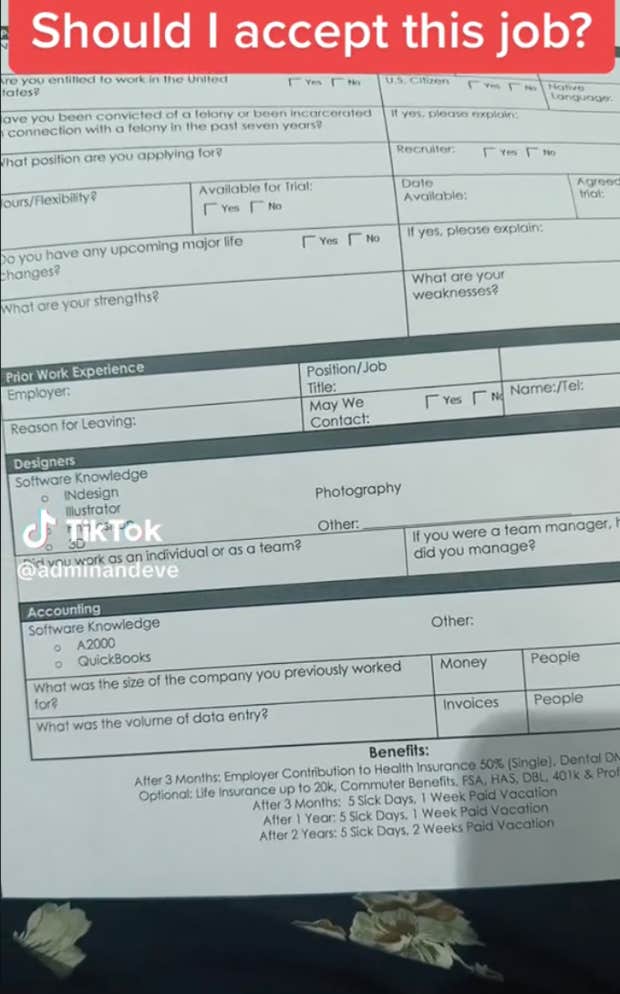 Afterward, the hiring manager walked over to Peña and handed her a piece of paper for her to fill out. She pointed out that there was no introduction when he had done that. While filling out the form though, Peña noticed an odd question on the form.