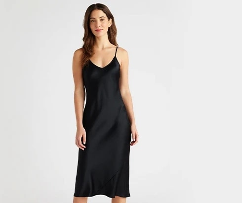 This super-flattering LBD fit is made from 100% mulberry silk, in a satin finish. The kicker? The silk is washable!
